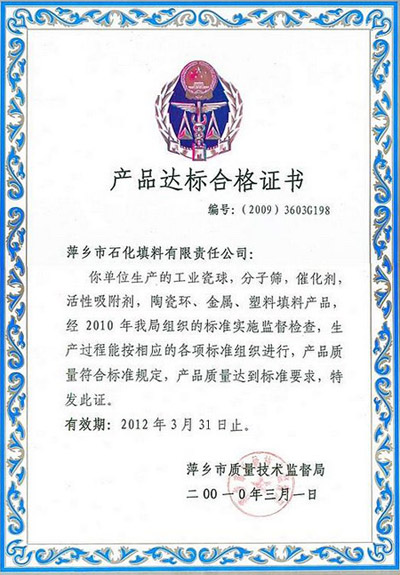 產品達標合格證書